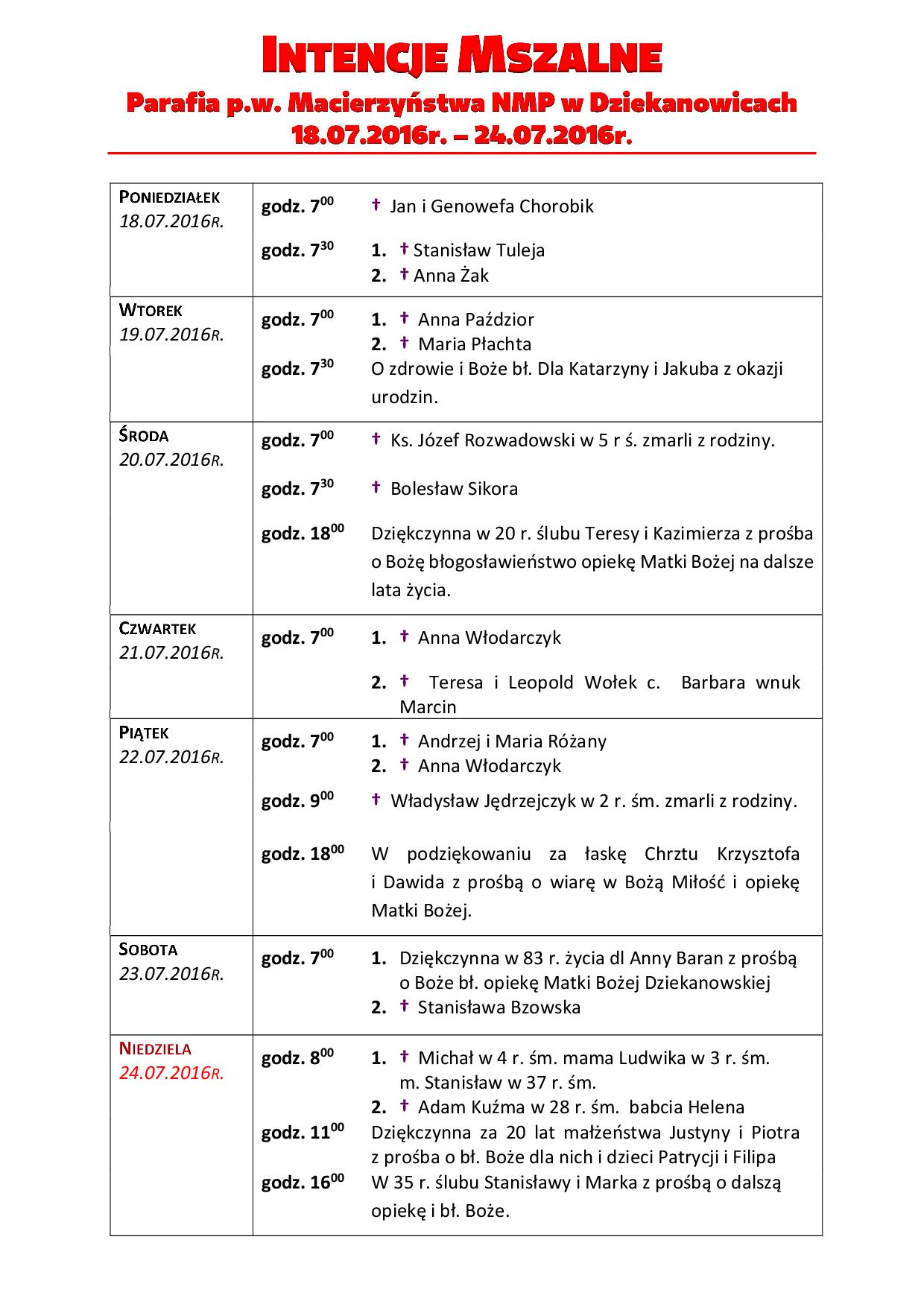 * 13.07 w środę przed Mszą Św. wieczorną MATKI BOŻEJ RÓŻAŃCOWEJ